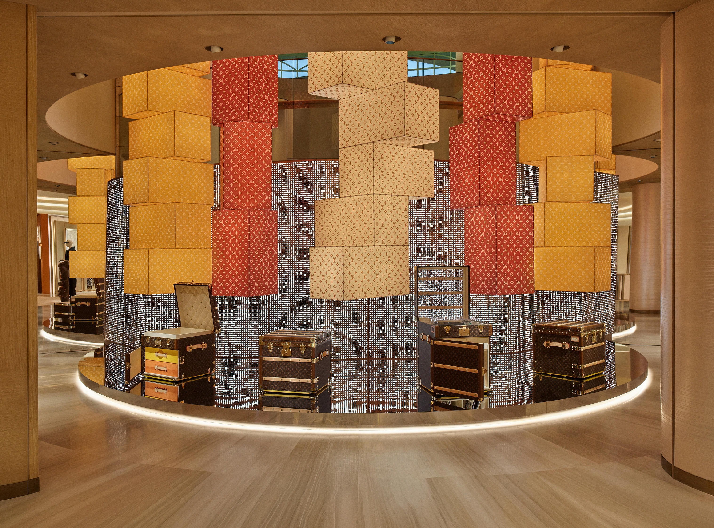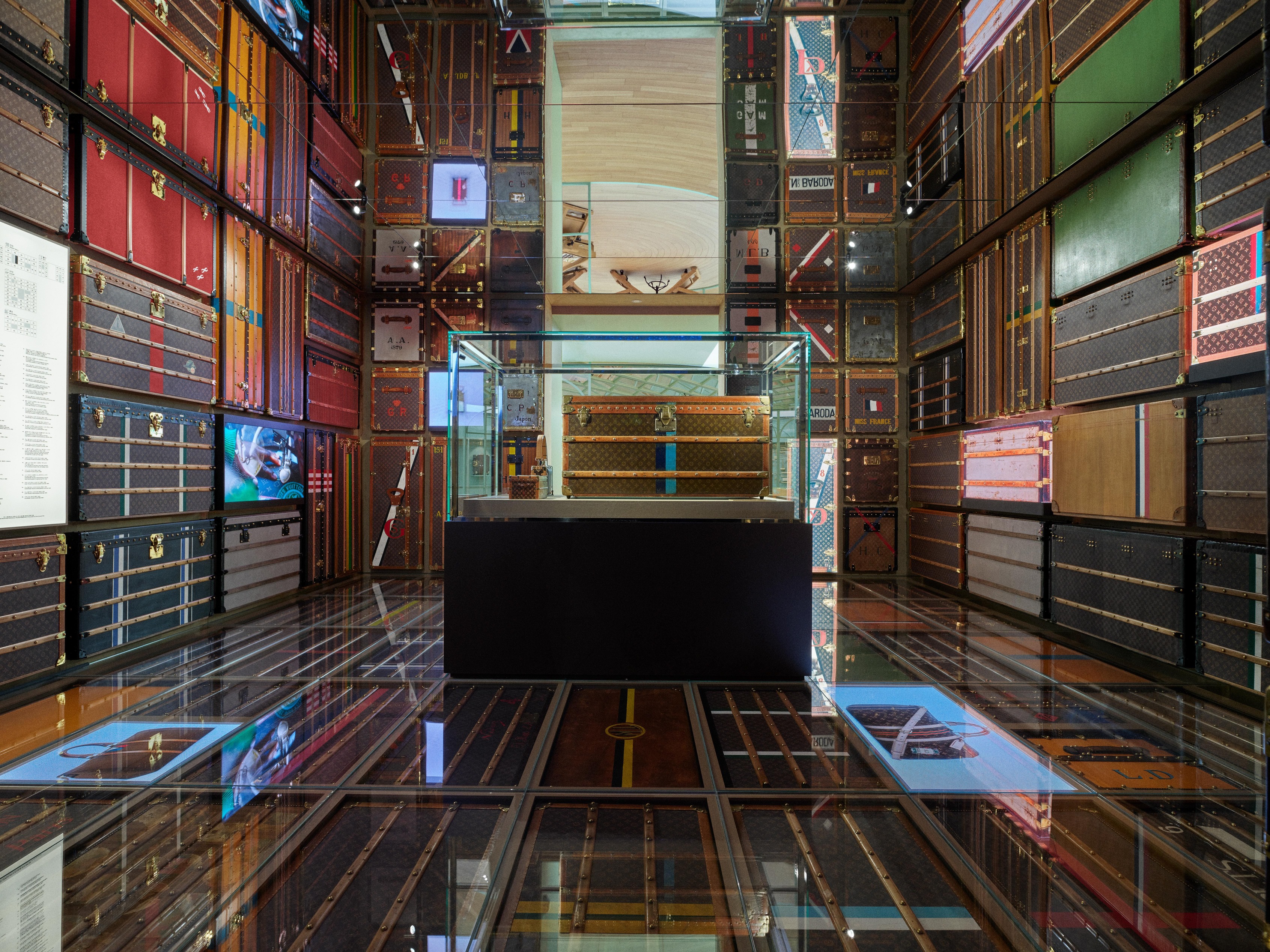 这座楼高6 层的沉浸式空间,巧妙揉合了精品零售、艺术策展与美食飨宴,甫登场便跃升为首尔最新的时尚艺术地标。作为该空间的体验核心,Louis Vuitton 邀聘 OMA 建筑事务所合伙人重松象平( Shohei Shigematsu )操刀设计,打造常设展览「远见之旅首尔站」( Visionary Journeys Seoul )。在广达 1,300 平方公尺的主题空间中,重松象平建构出一场跨越 160 年的品牌史诗旅程。全展由11 个主题展厅与 2 件装置艺术组成,从「历史、生活方式、工艺、合作」四大面向交织连结,全面解析品牌的过去与现在。其中,位于 5 楼的「起源」( Origins )展厅,以近千份文献简报与 30 余件珍贵文物,筑起一道引领宾客探寻品牌根源的历史长廊;而工坊展区则由资深工匠现场示范,让参观者得以近距离领略 LV 传承百年的精湛工艺。