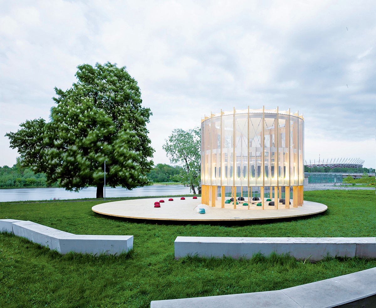 為了緩解全球空汙問題,同時為兒童創造有益身心的玩樂空間,來自倫敦的 ecoLogicStudio,特別打造了全球第一座結合微藻空氣淨化技術的兒童遊樂場「AirBubble」,並選在歐洲空汙問題較為嚴重的波蘭華沙,來啟動這項淨化空氣計劃。AirBubble 除了以原木支撐結構和 ETFE 薄膜,構築出半透明的圓柱狀建築體,在原木結構間更設置有 52 個裝載了微藻培養系統的玻璃器皿,讓 AirBubble 成為城市裡微藻溫室。這些玻璃器皿裡的綠色微藻,除了會吃掉汙染物和二氧化碳,並且每分鐘可以過濾掉 200 公升的污染空氣,進而產出新鮮又潔淨的氧氣。AirBubble 也以倒錐形通風屋頂設計,來促進空氣循環與對流。此外,這一整個微藻空氣淨化系統,除了以太陽能為動力,同時也以遊樂場裡的繩索、彈力球、腳踏打氣幫浦,來創造其餘的所需動力,讓小朋友一邊玩耍,一邊為 AirBubble 帶來動能,持續創造源源不絕的清新空氣。而 AirBubble 的監測系統也直接與城市空污感應器連結,能夠即時顯示 PM2.5、PM10 等污染指標,來幫助民眾隨時對空氣品質與健康生活懷抱覺知。